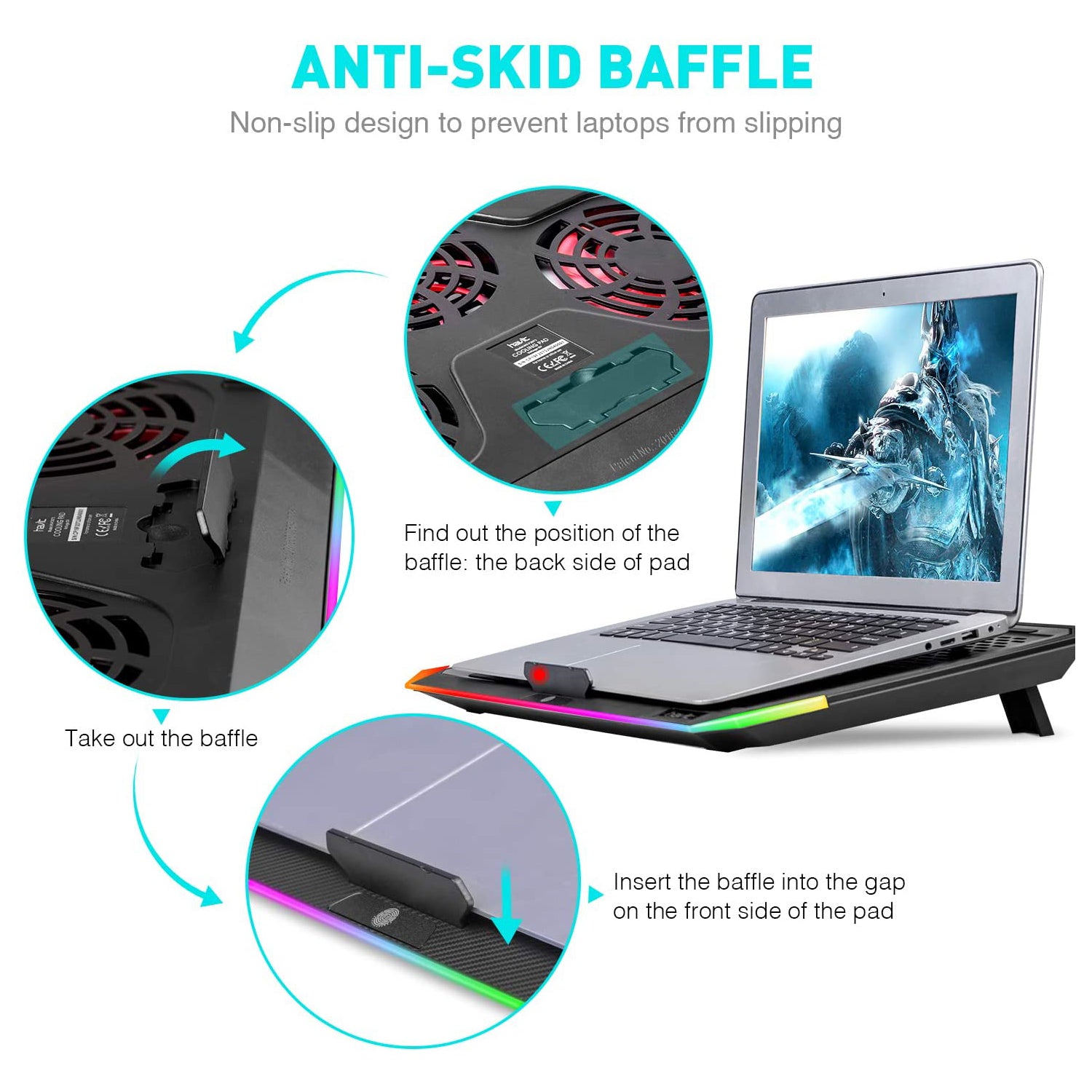 HAVIT F2073 Gaming-Laptop-Kühlpad für 15,6-17-Zoll-Laptops mit RGB-Hintergrundbeleuchtung und Touch-Steuerung