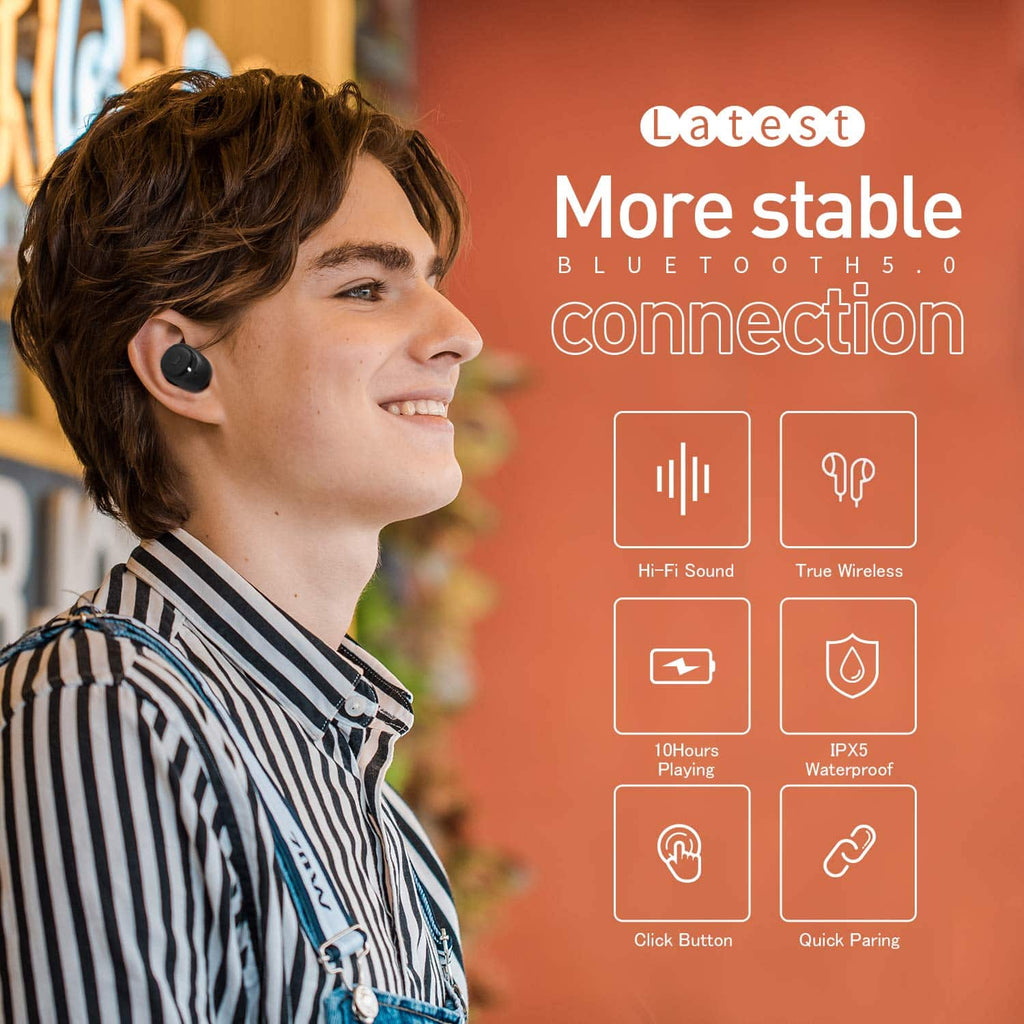 With the latest Bluetooth 5.0 technology, the Bluetooth connection of I96 True Wireless Earphones is not only more stable than 4.0, which reduces power consumption, but also provide quick pairing functionality.
